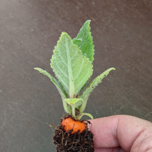 De beaux bulbes de Sinningia magnifica de 1 cm avec ou sans feuilles selon la saison. De nouvelles feuilles se forment peu après l’arrosage.